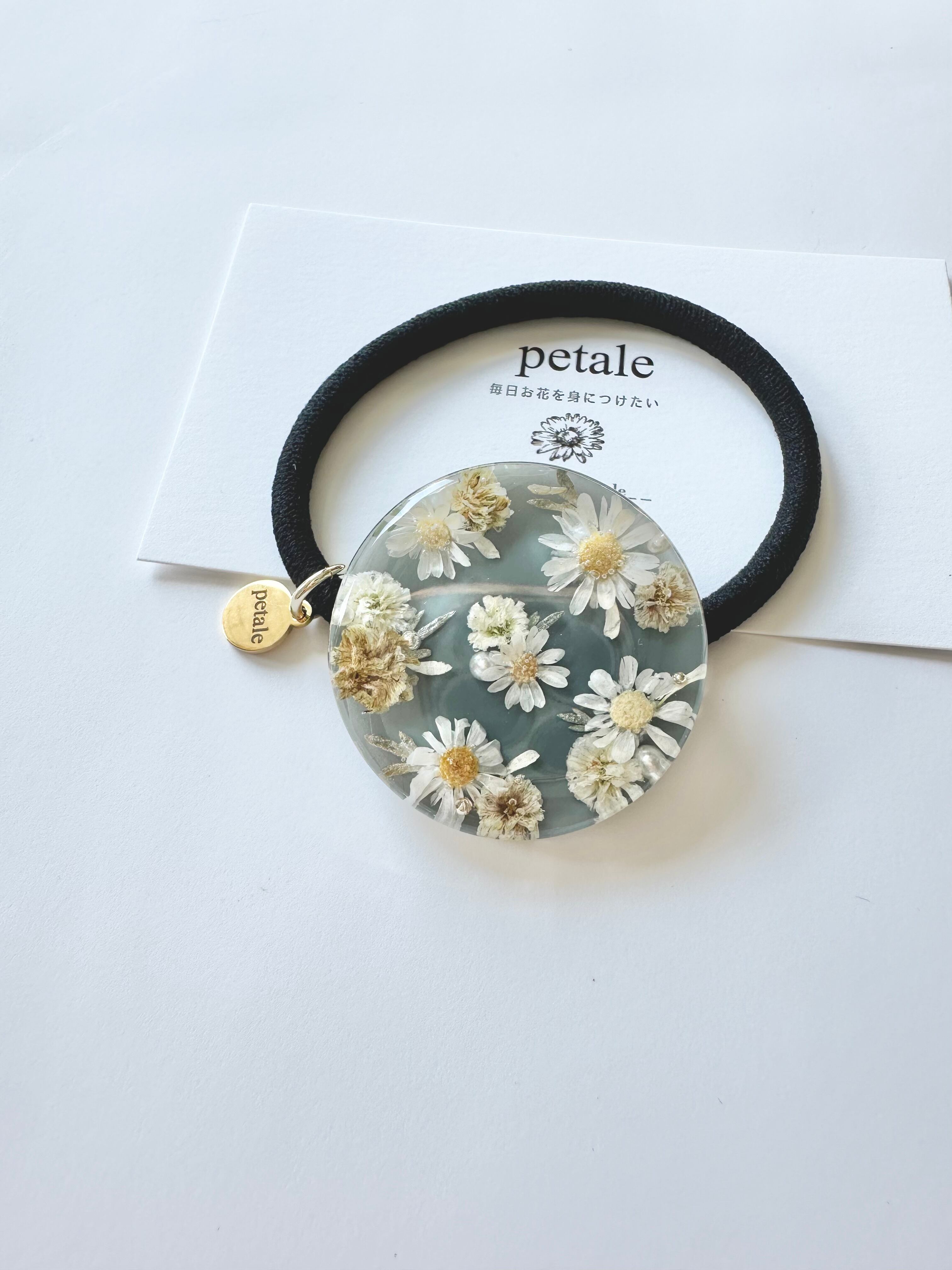 ぷっくりと大きめの花柄ラウンドヘアゴム。