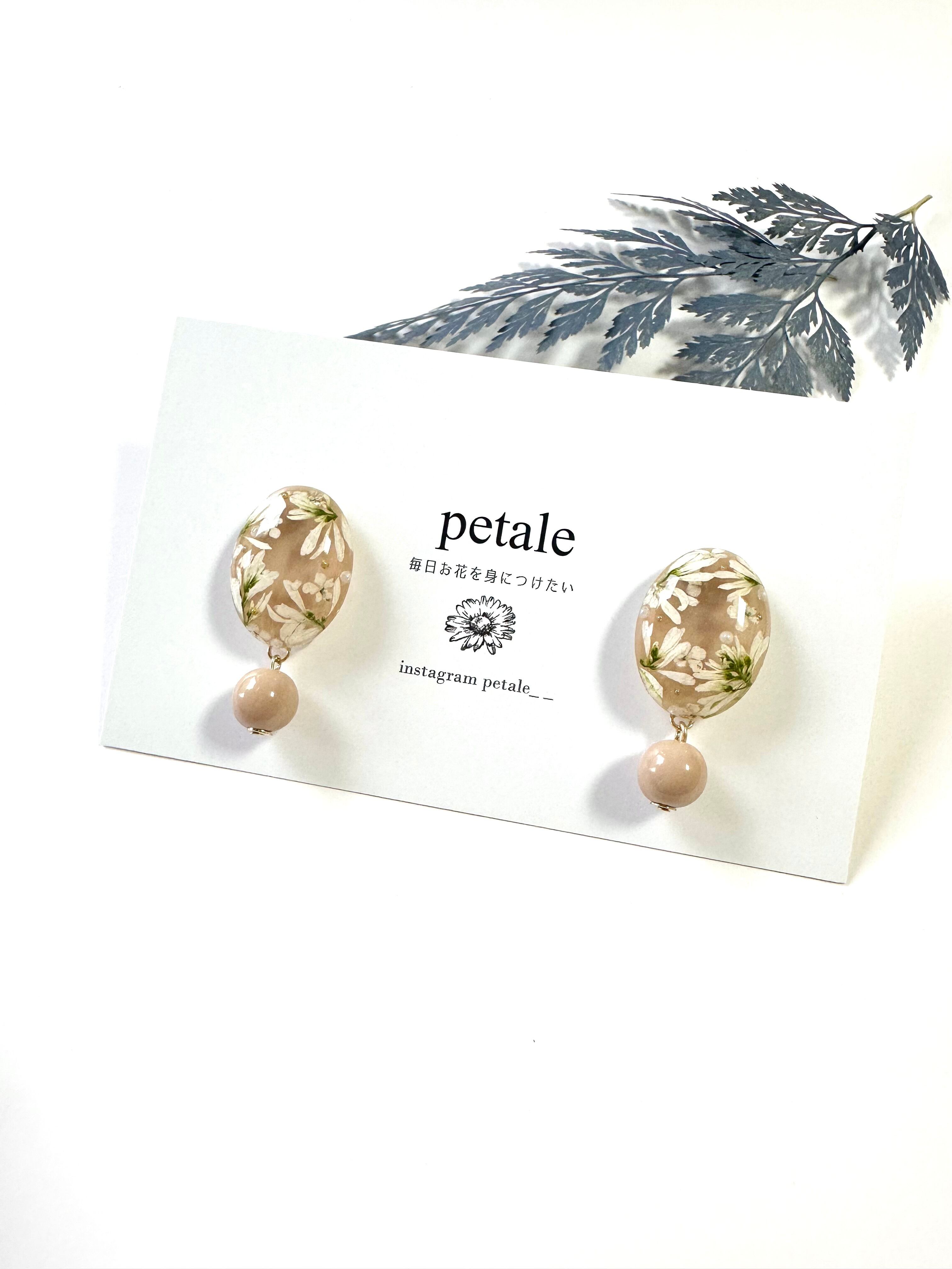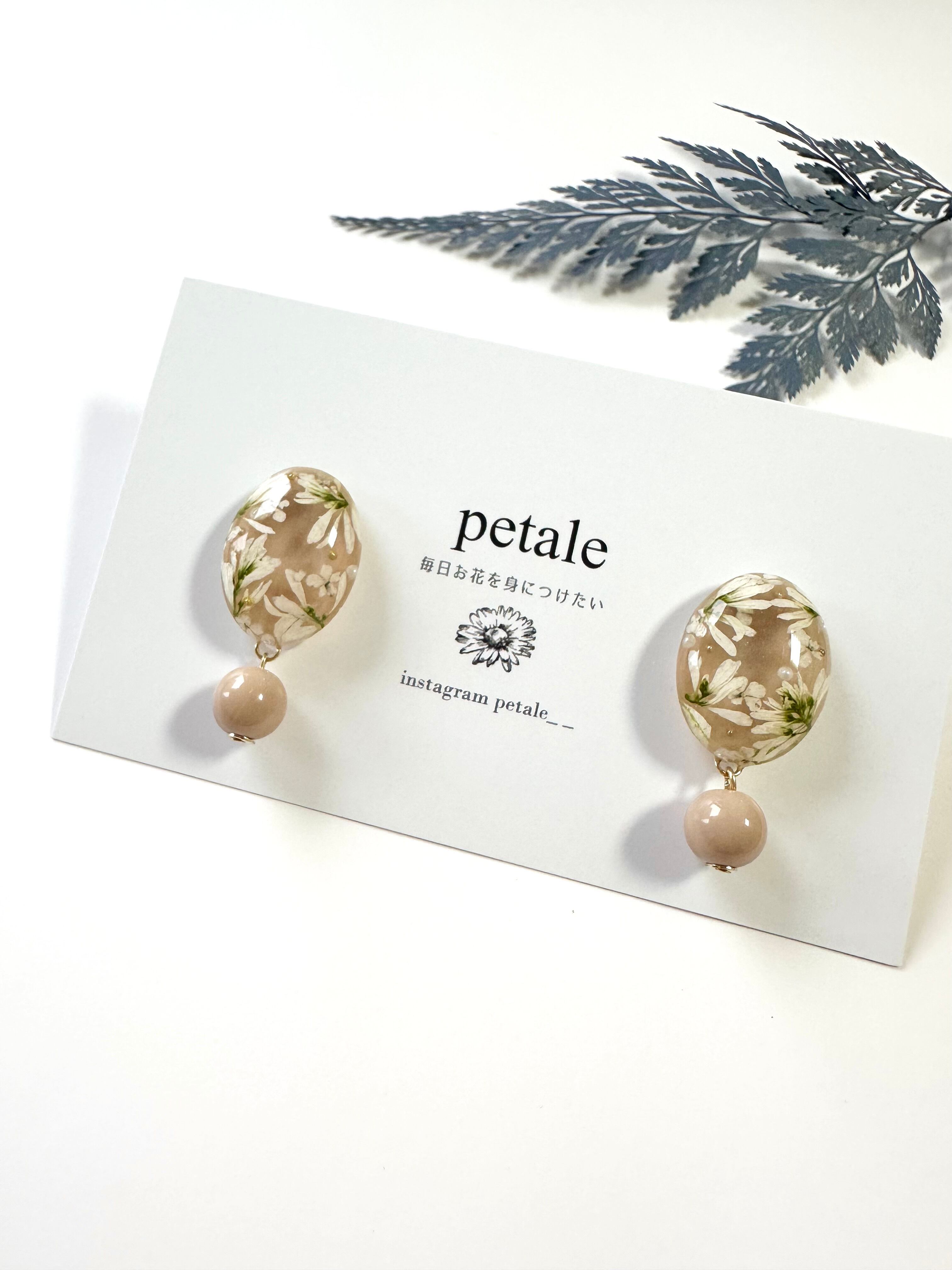 花柄オーバル+ミニポンポンイヤーアクセサリー