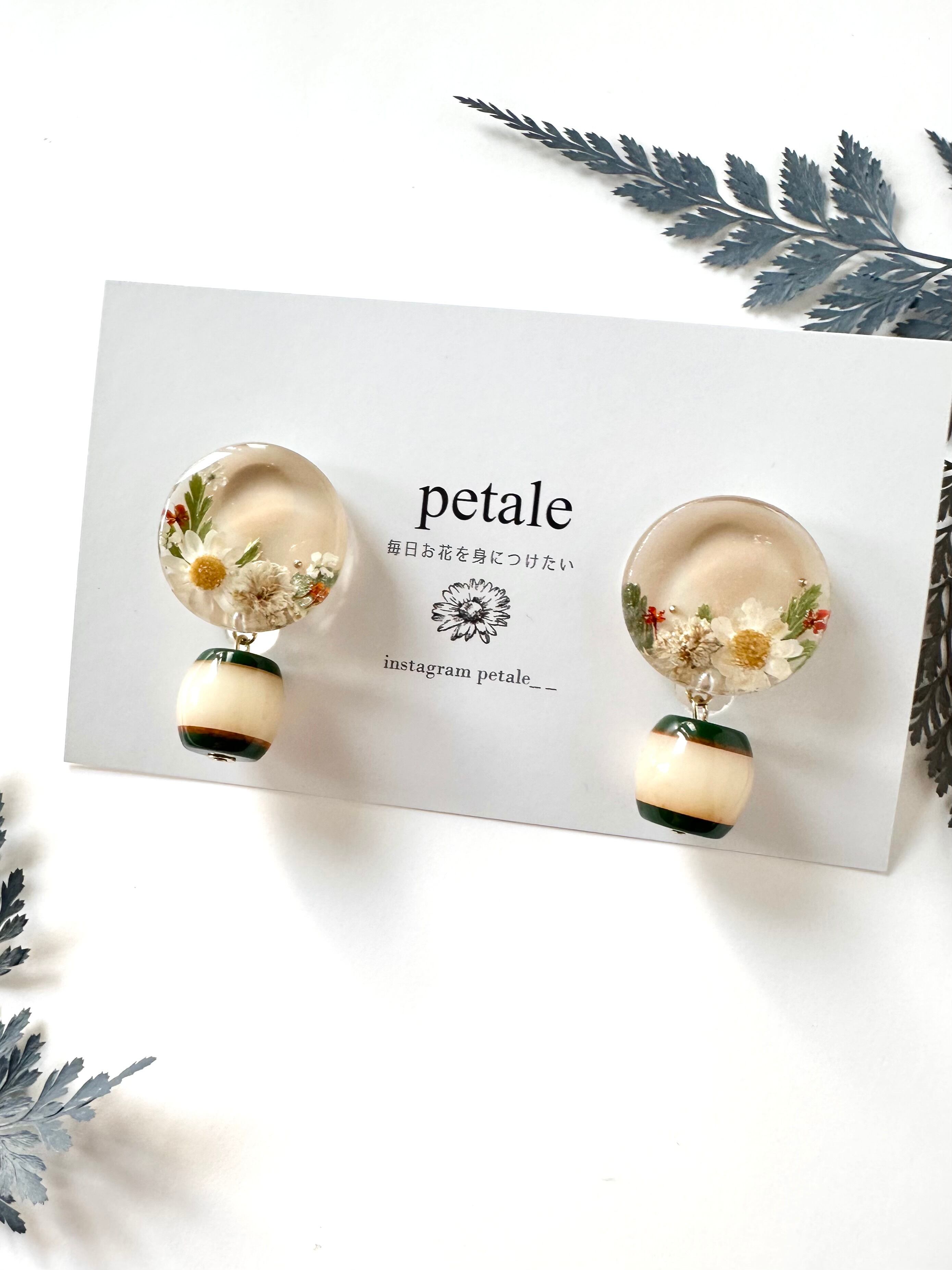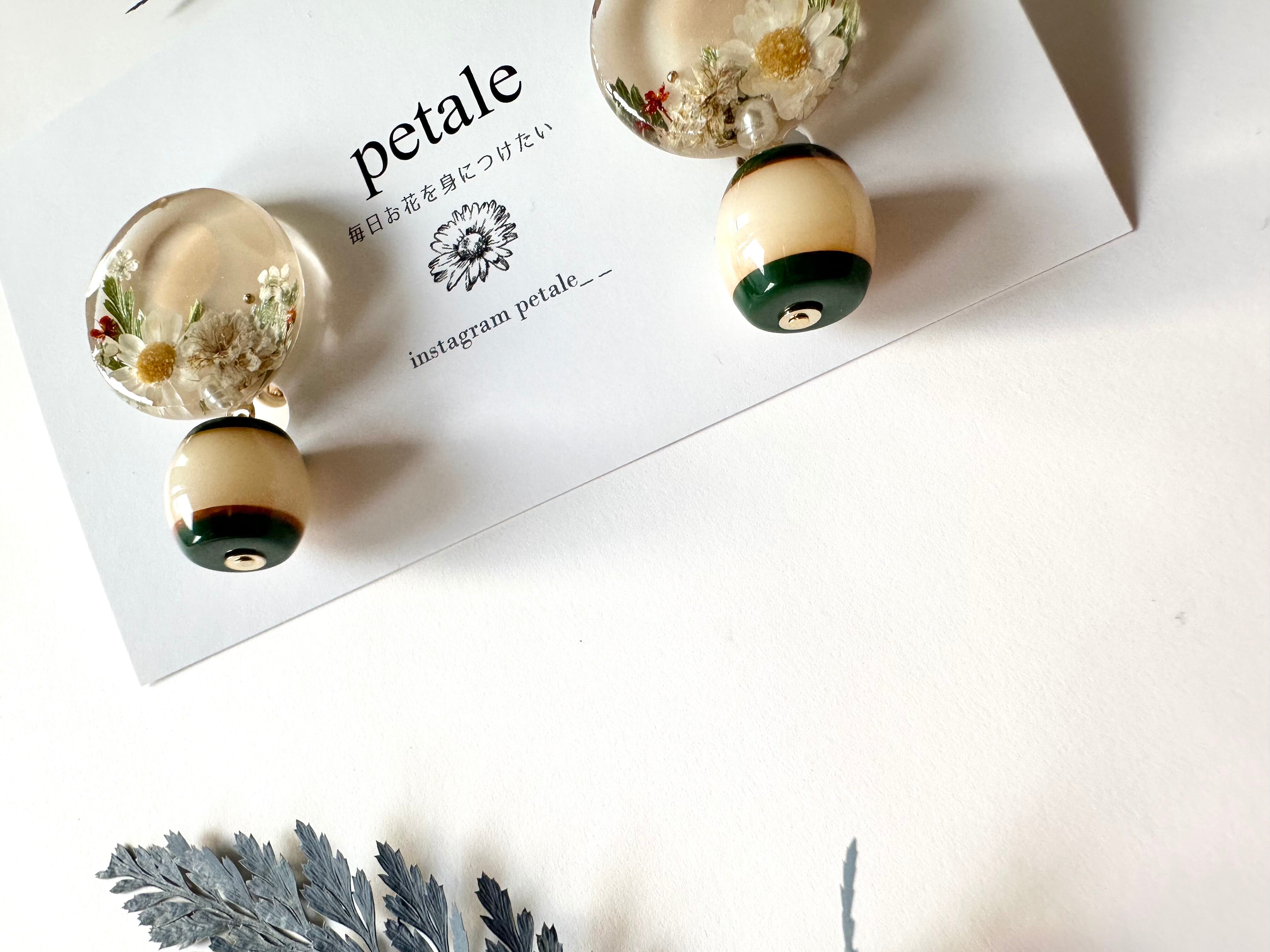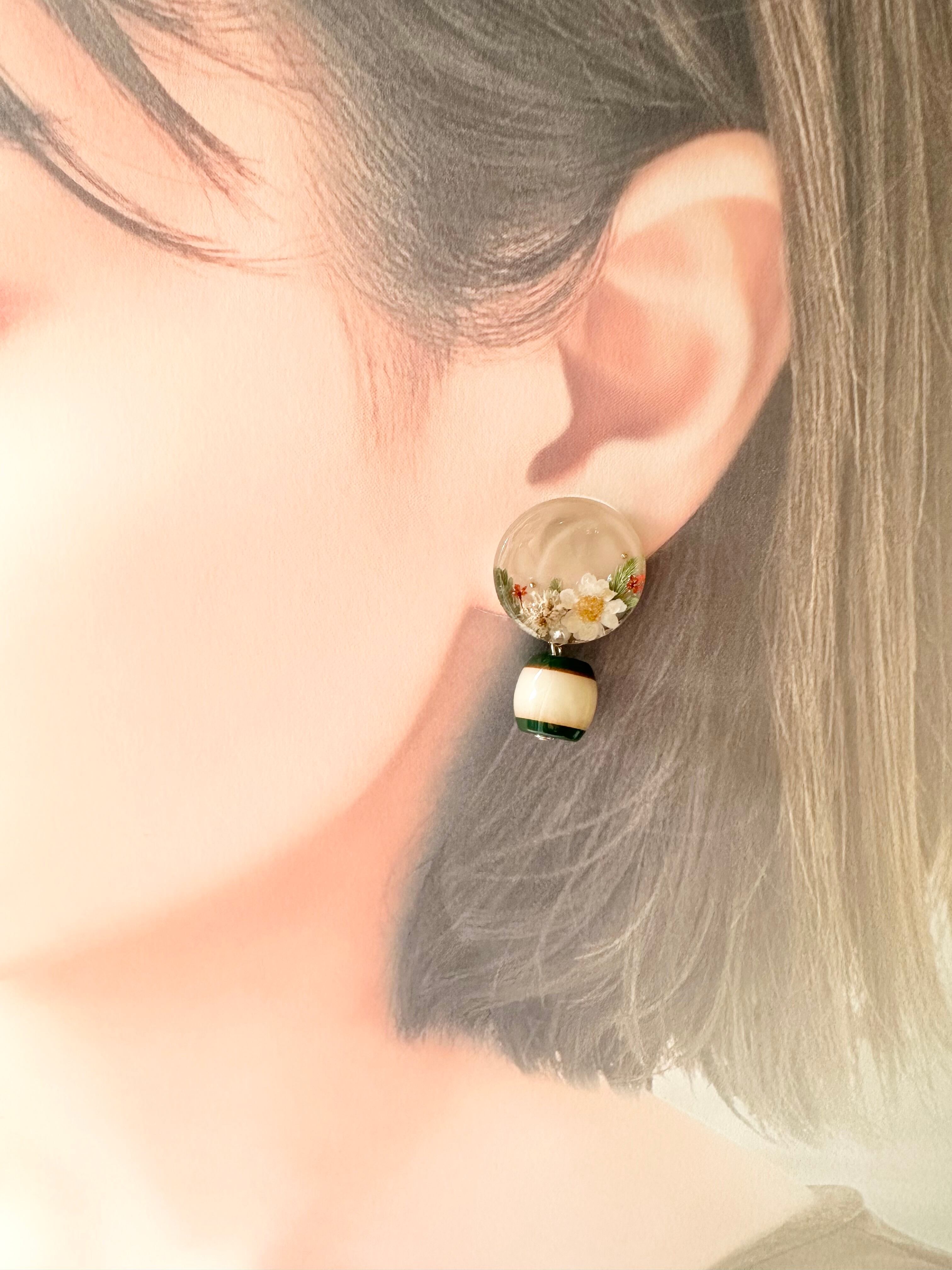 花咲くミルクティラウンド+グリーンアクリルビーズイヤーアクセサリー