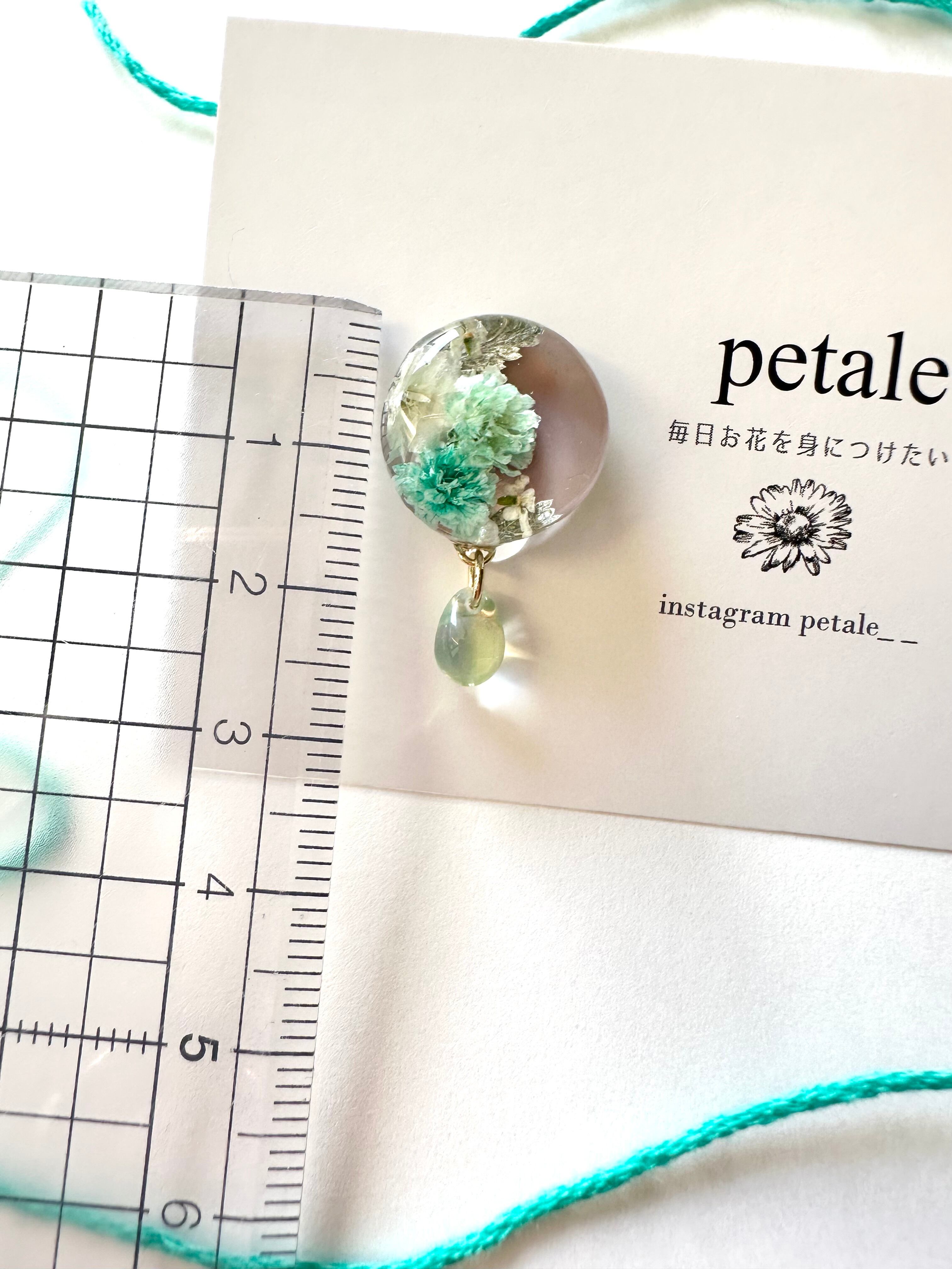 優しいミントグリーンとホワイトカラーの淡いお色味のお花をとじこめた