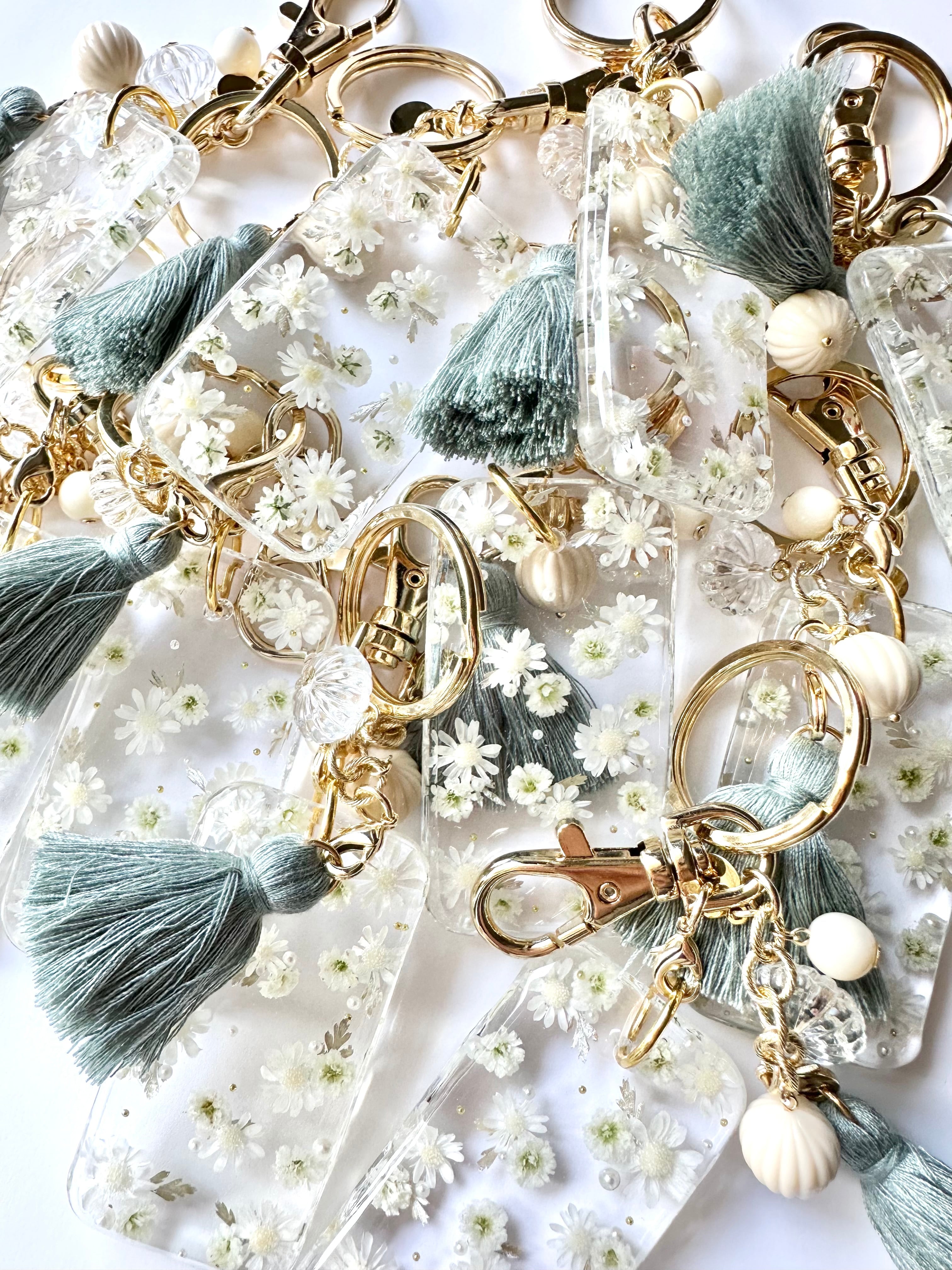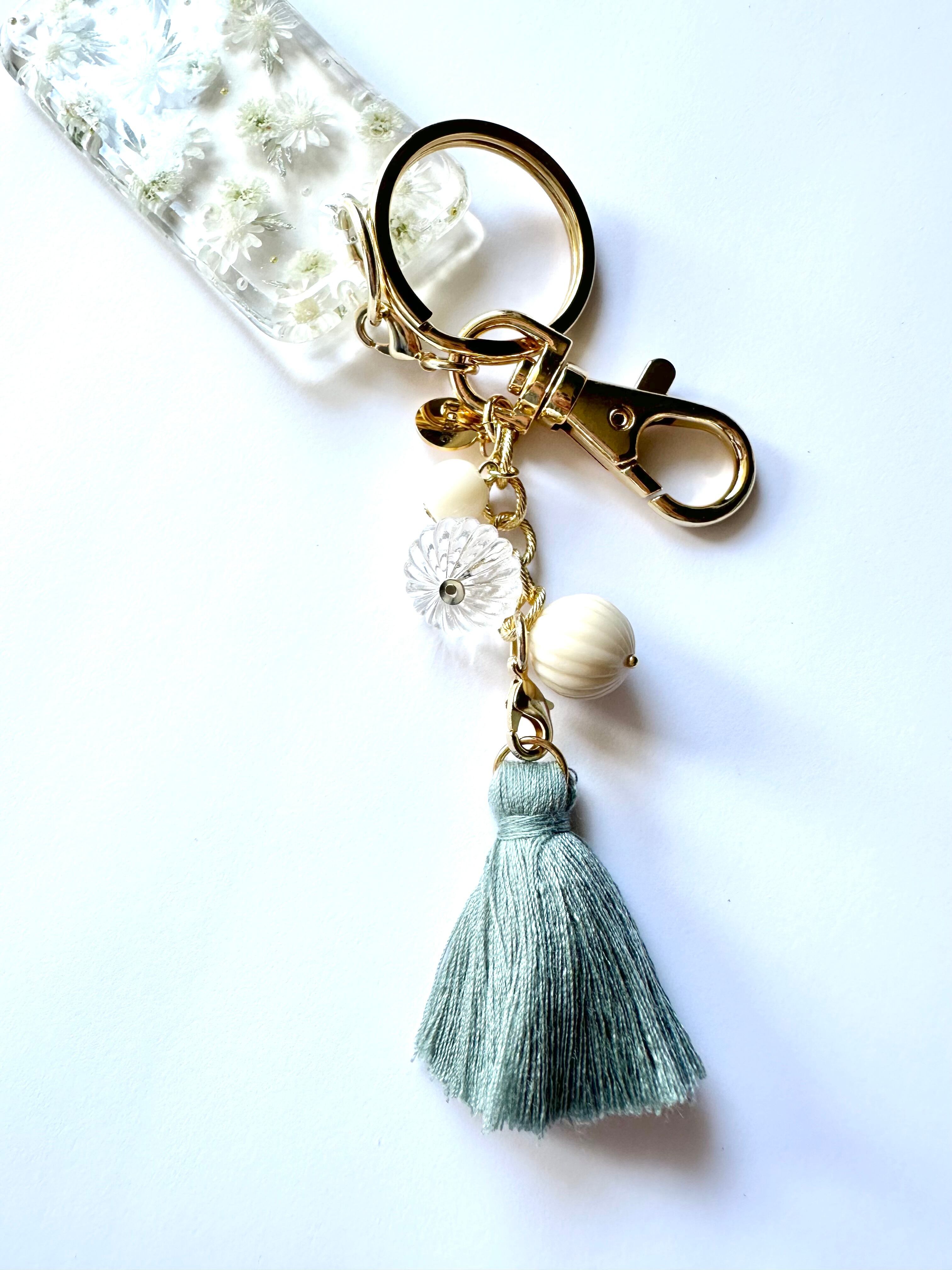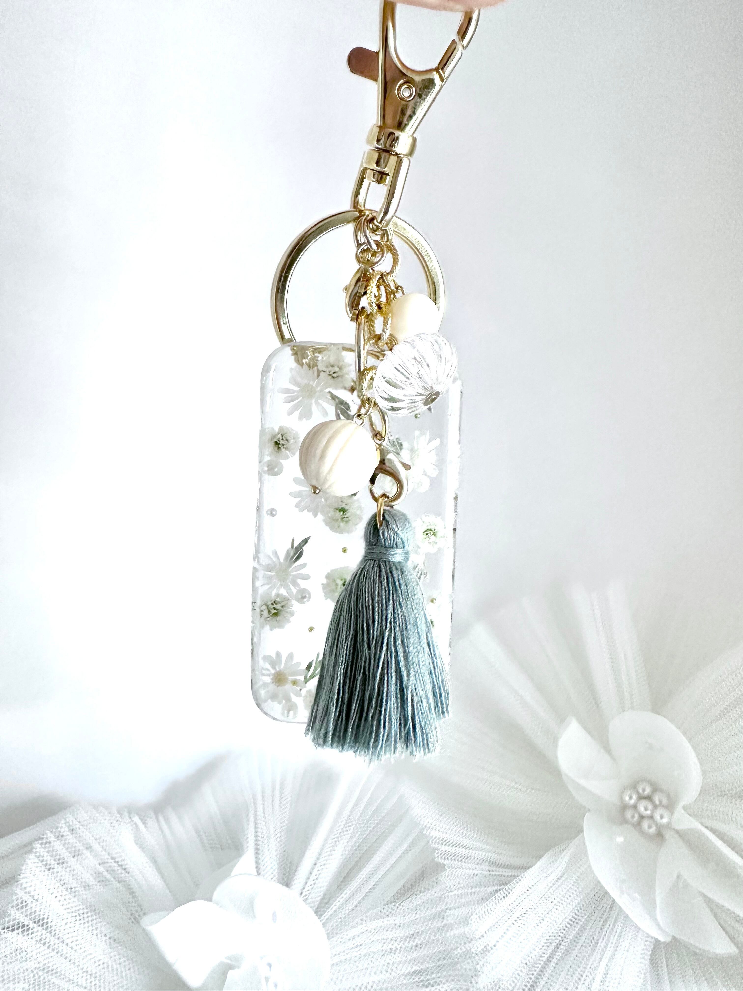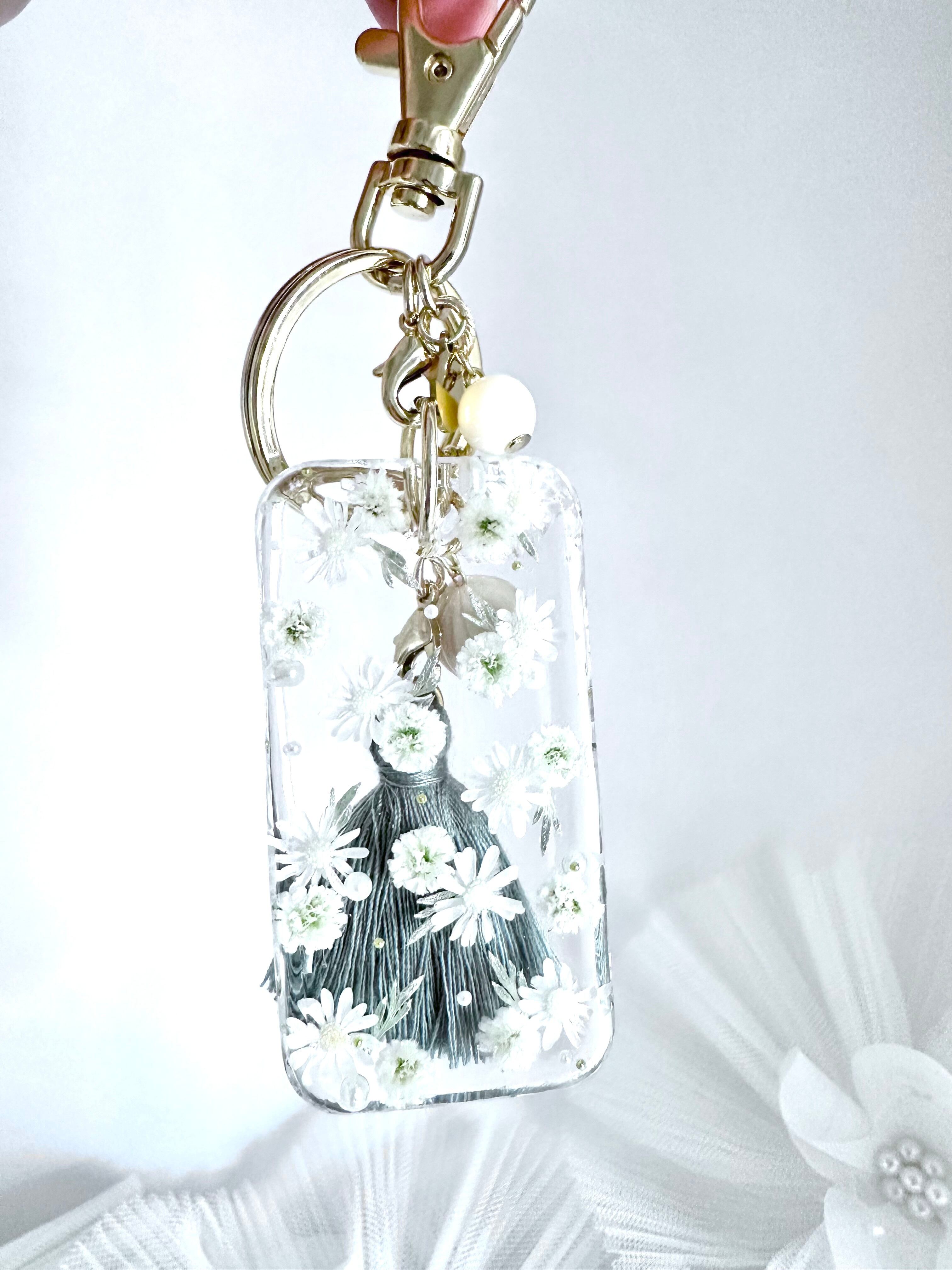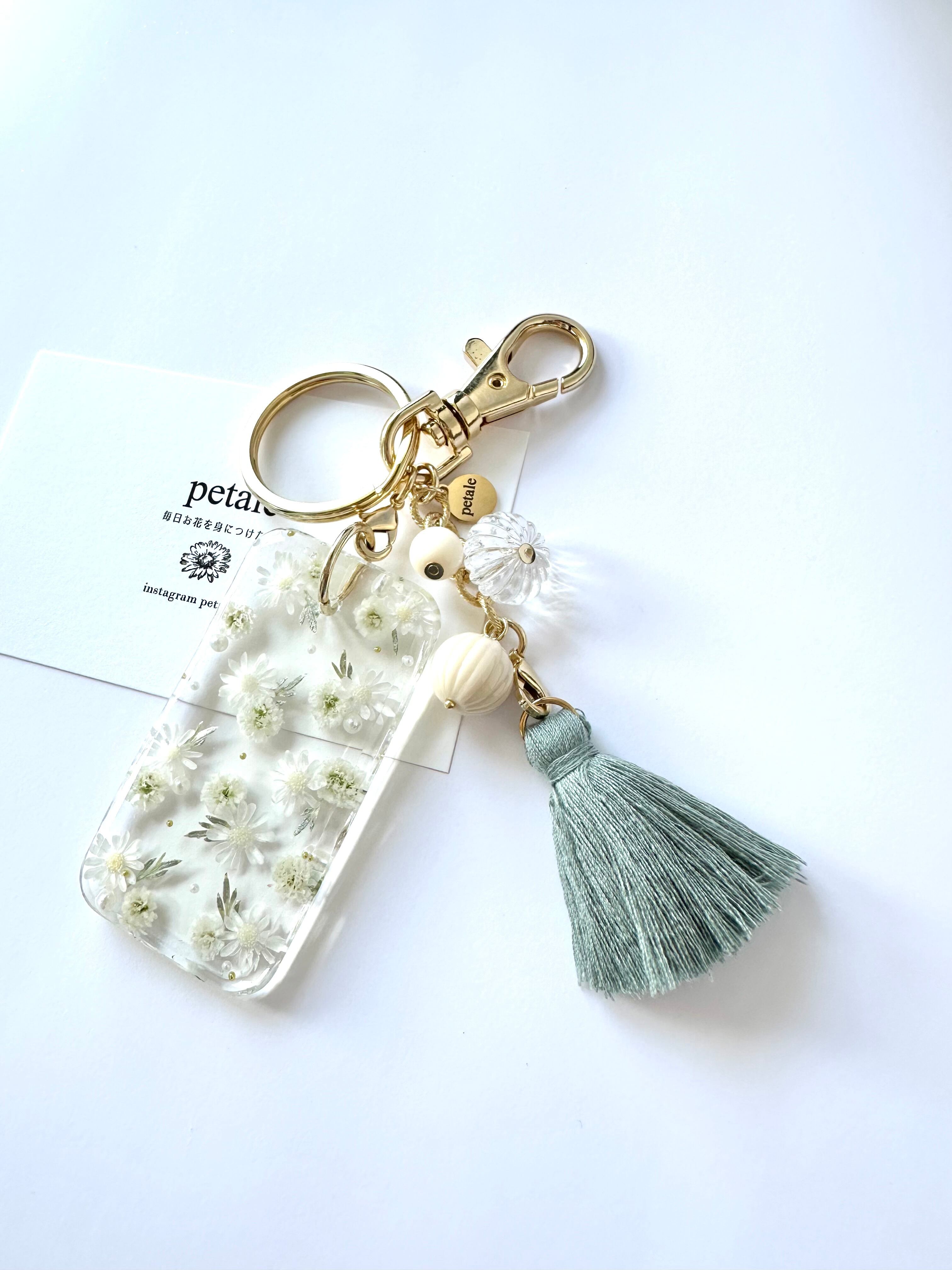 訳あり30%off♡白いお花の花柄キーチャーム