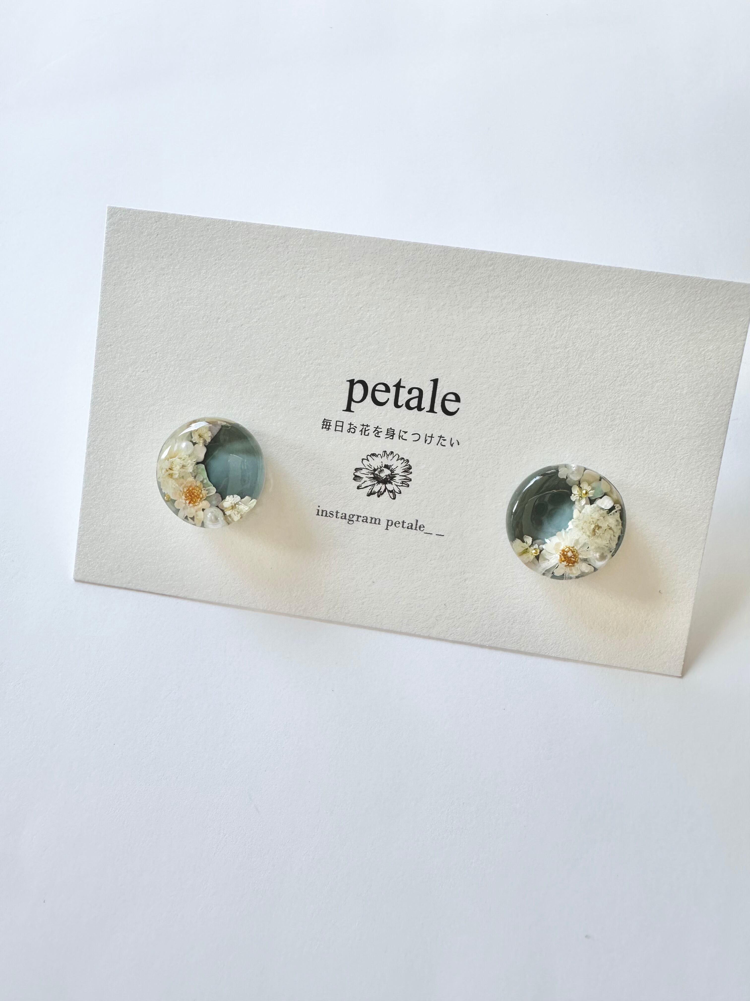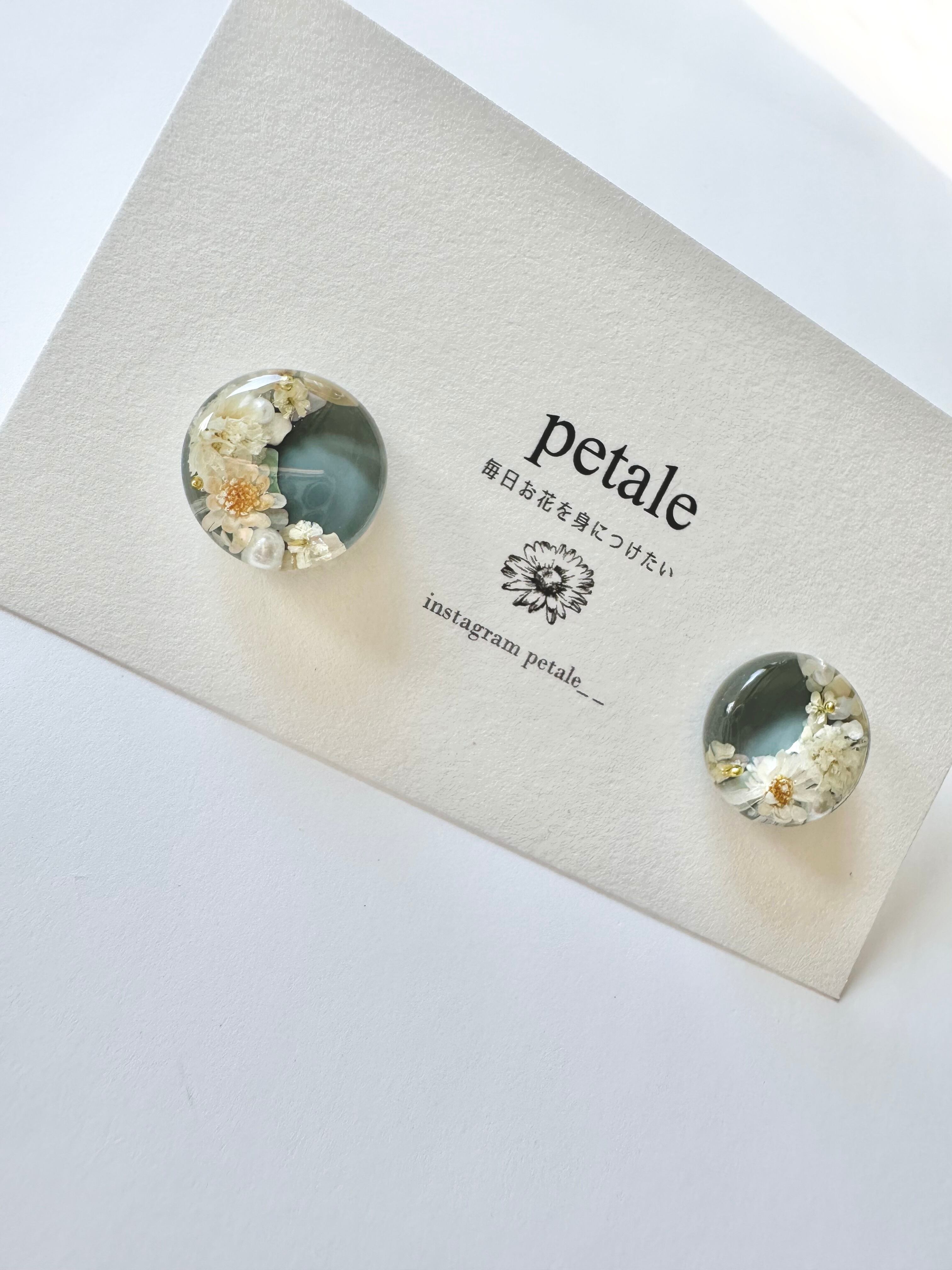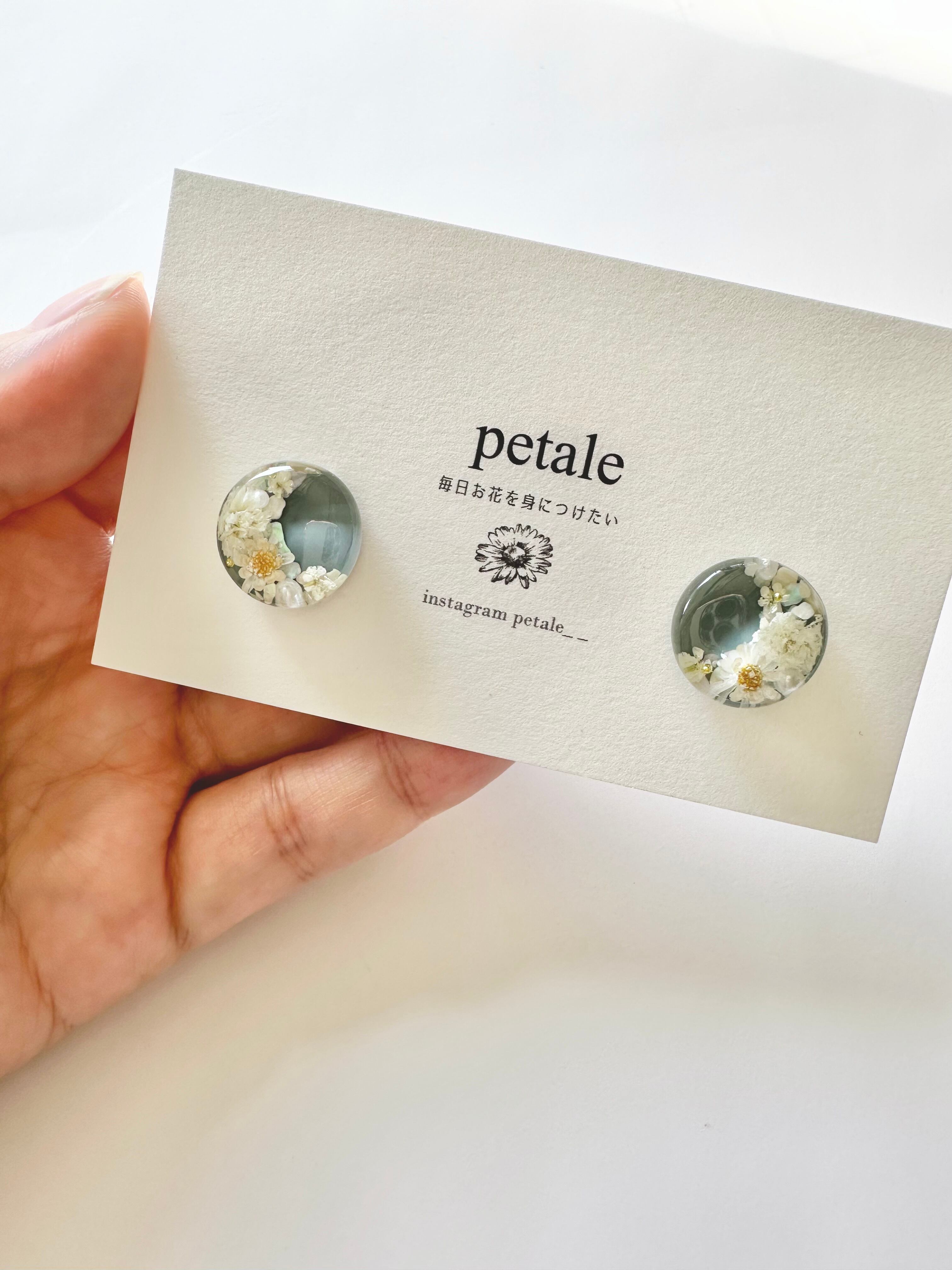 月に花咲くスモーキーグリーンミニラウンドイヤーアクセサリー